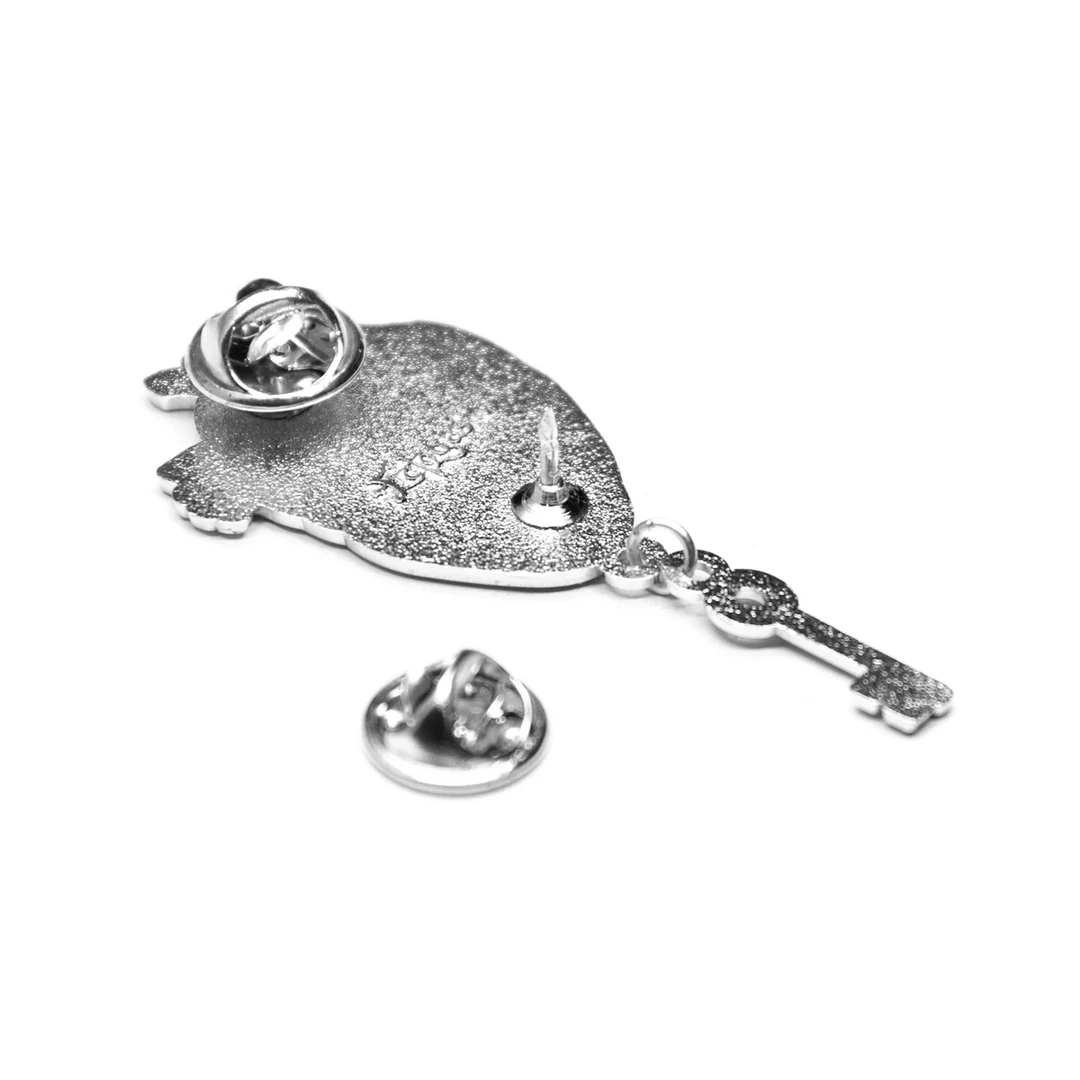 This vintage medical illustration inspired enamel pin from Ectogasm features an anatomical heart with a tiny hanging key charm. Made with silver metal and black enamel, it makes a spooky accessory to pin on your jacket.