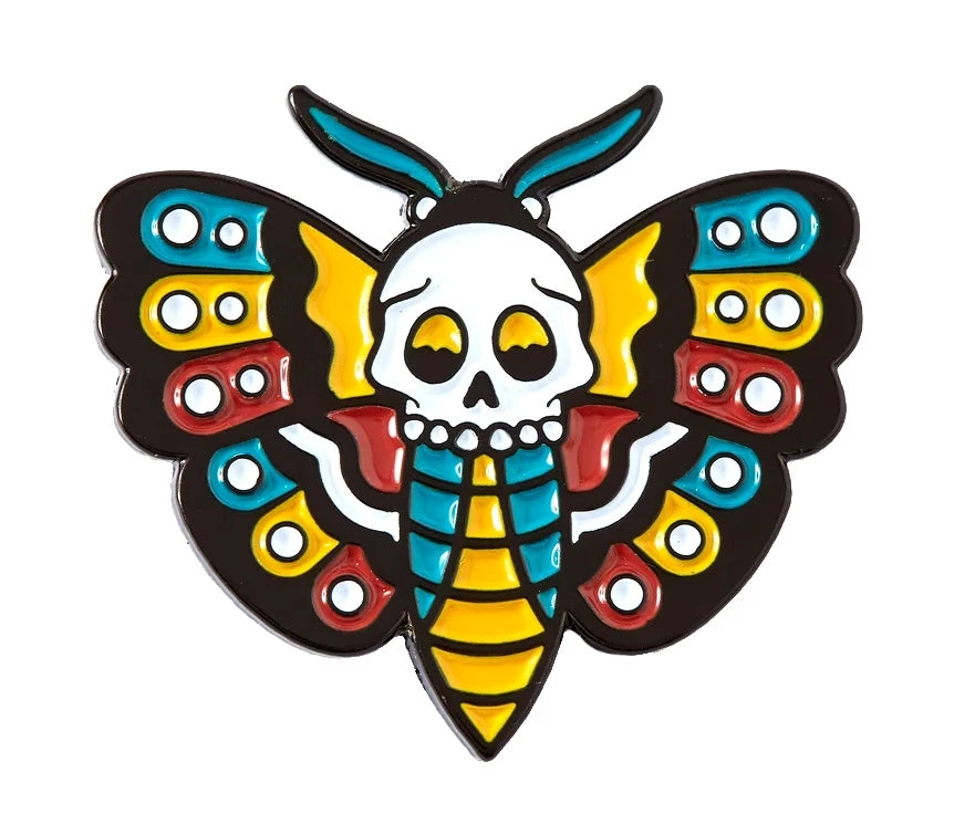 Take a Death Head Moth and give it a tattoo inspired spin and you have one awesome pin from Punky Pins. Perfect for pinning to your vest, jacket or tote.