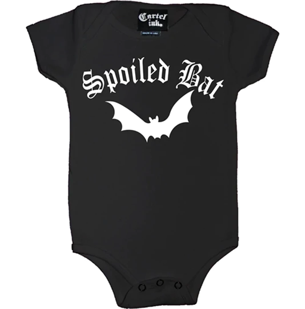 Keep spoiling your little bat with this cute one piece from Cartel Ink. It features their original “Spoiled Bat” design printed on a soft, 100% cotton, solid black one piece.