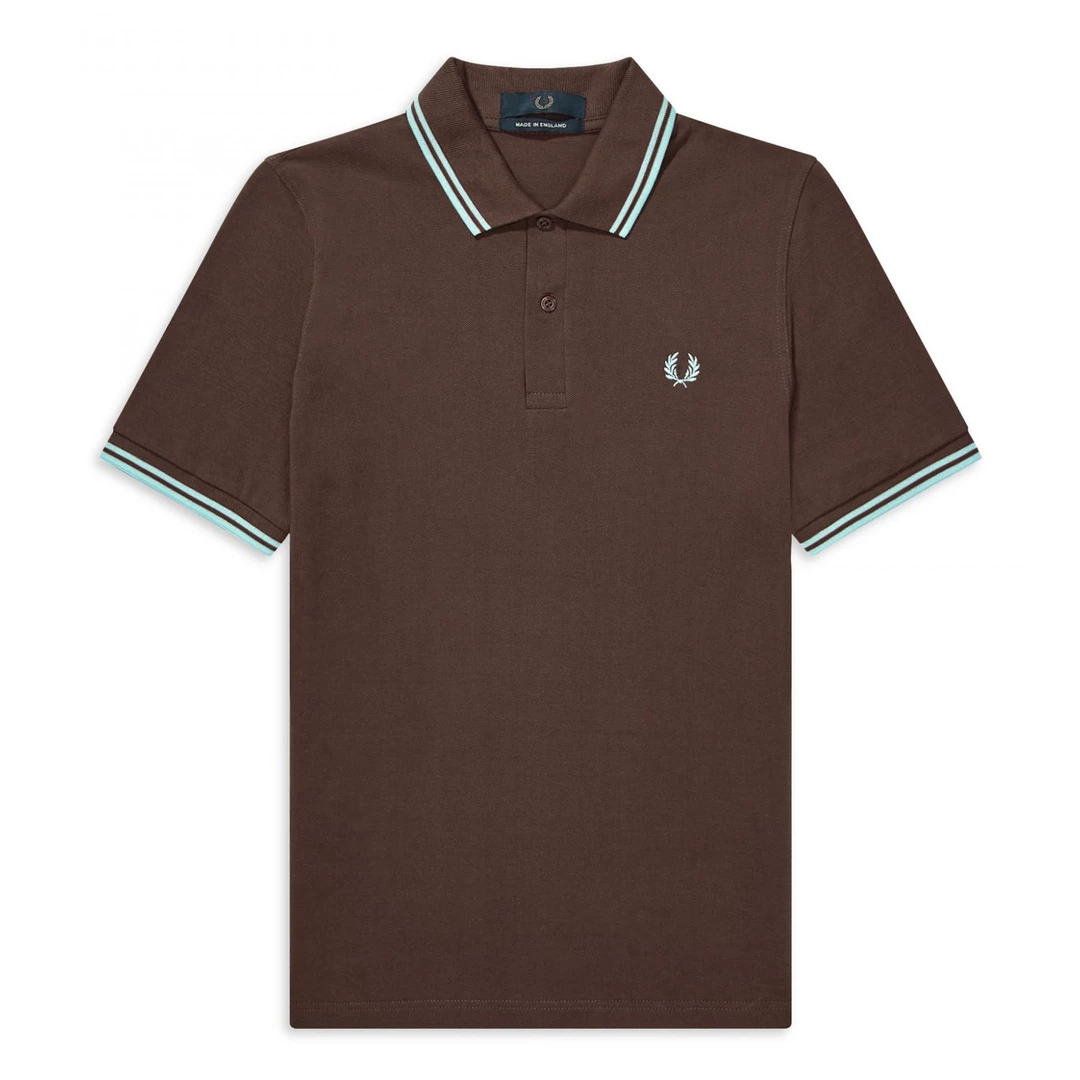Keep it classic in a M12 Fred Perry polo! This chocolate hued cotton polo shirt features ice blue piping with a matching ice blue embroidered laurel on the chest. Designed in their famous streamlined fit – slightly boxier than the M3600 – it’s production is a real labor of love, with each polo knitted, dyed, cut, embroidered and hand-finished in Leicester, England.