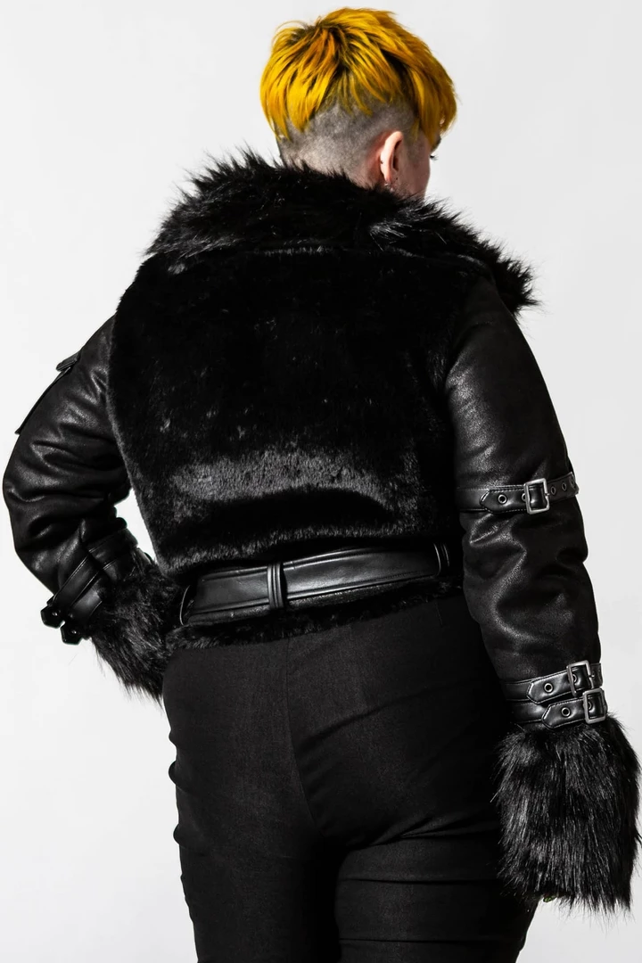 Keep warm while serving serious looks in the killer Alchemy Aviator Jacket from Killstar. This unique jacket features mixed faux fur and faux leather details for a warm and comfortable fit. Complete with buckle and zip details, this is a must-have piece for any winter wardrobe!