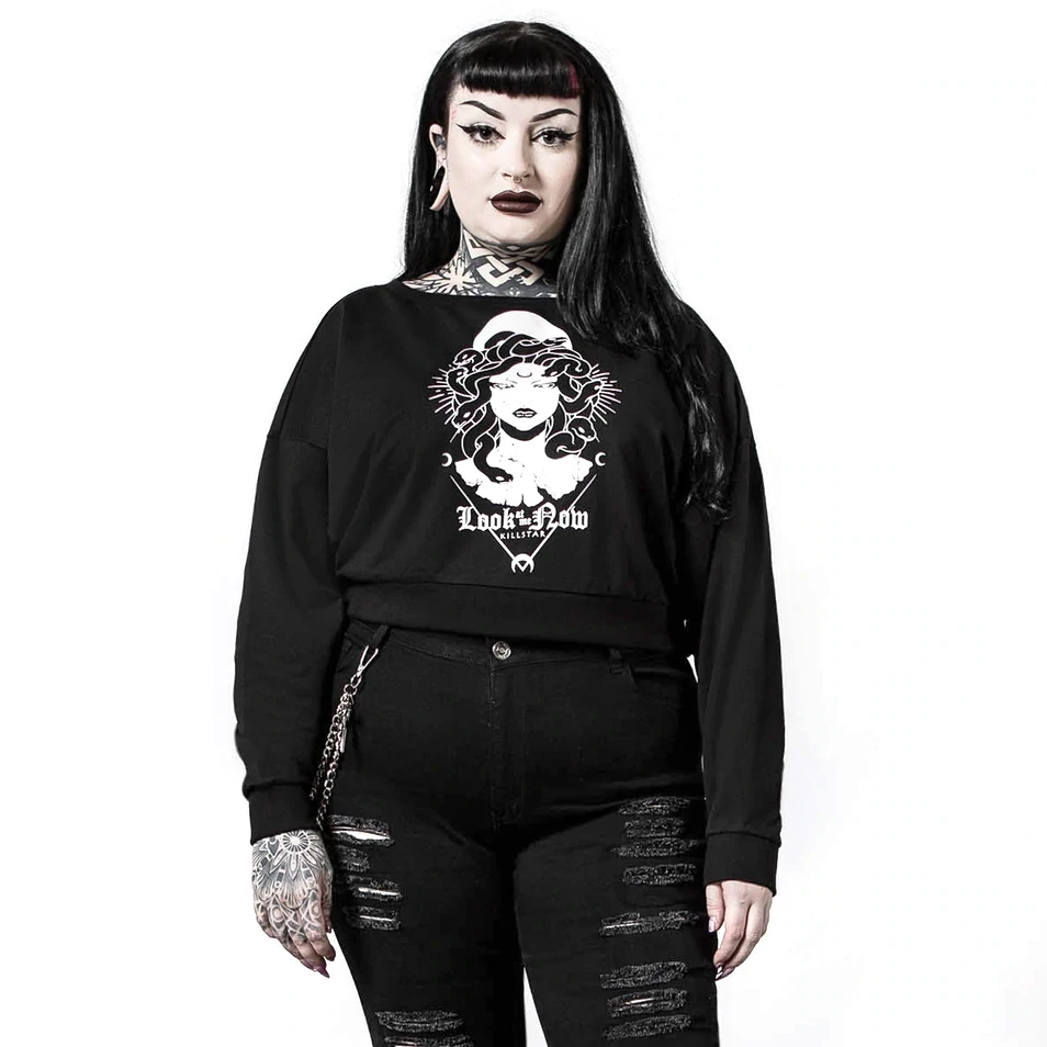 Look at me now! The Medusa slouchy sweater from Killstar is conjured from a super soft stretchy material for a comfortable fit. Features a relaxed fit, long sleeves and a statement graphic. Perfect for those days you want to be super comfortable!