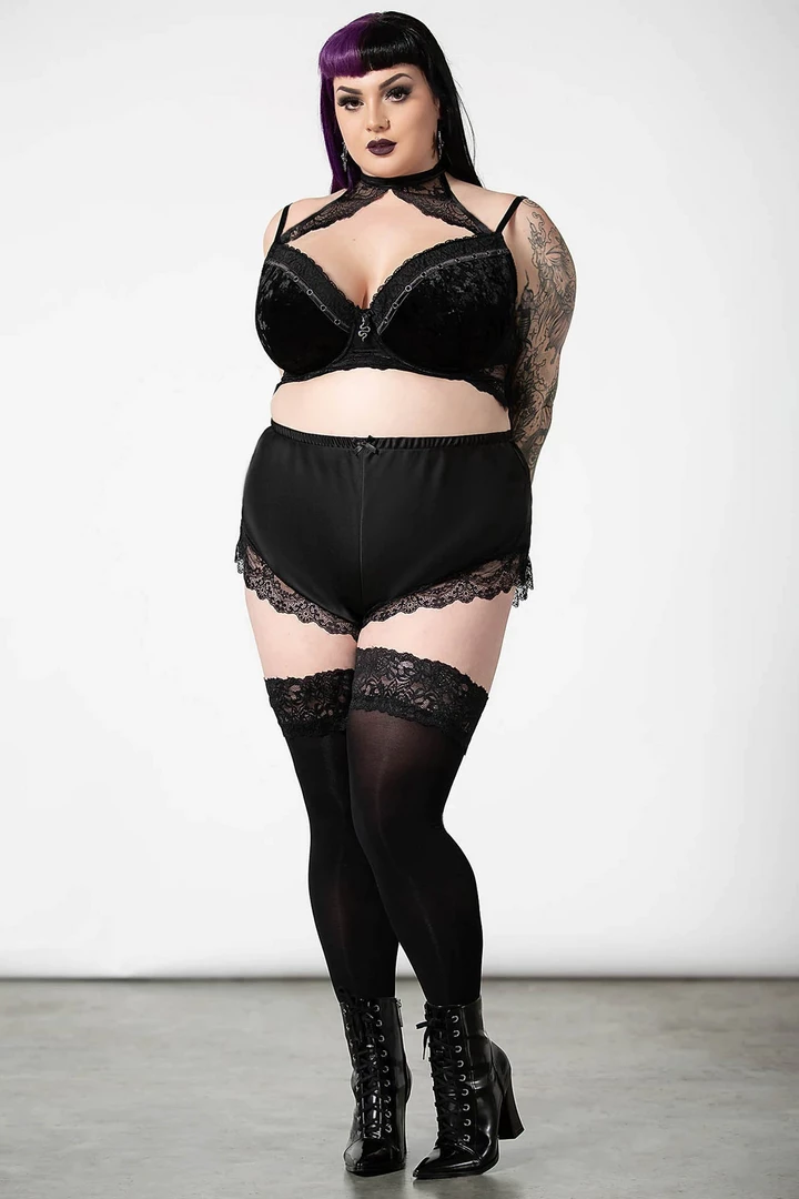 Spoil yourself with these luxe Severina Satin Shorts from Killstar. Made of a super soft satin material, these shorts are finished with a delicate lace trim and elasticated waist to create the perfect fit. Great for lounging around during the day or pair with your favorite bralet or cami for cute pjs!
