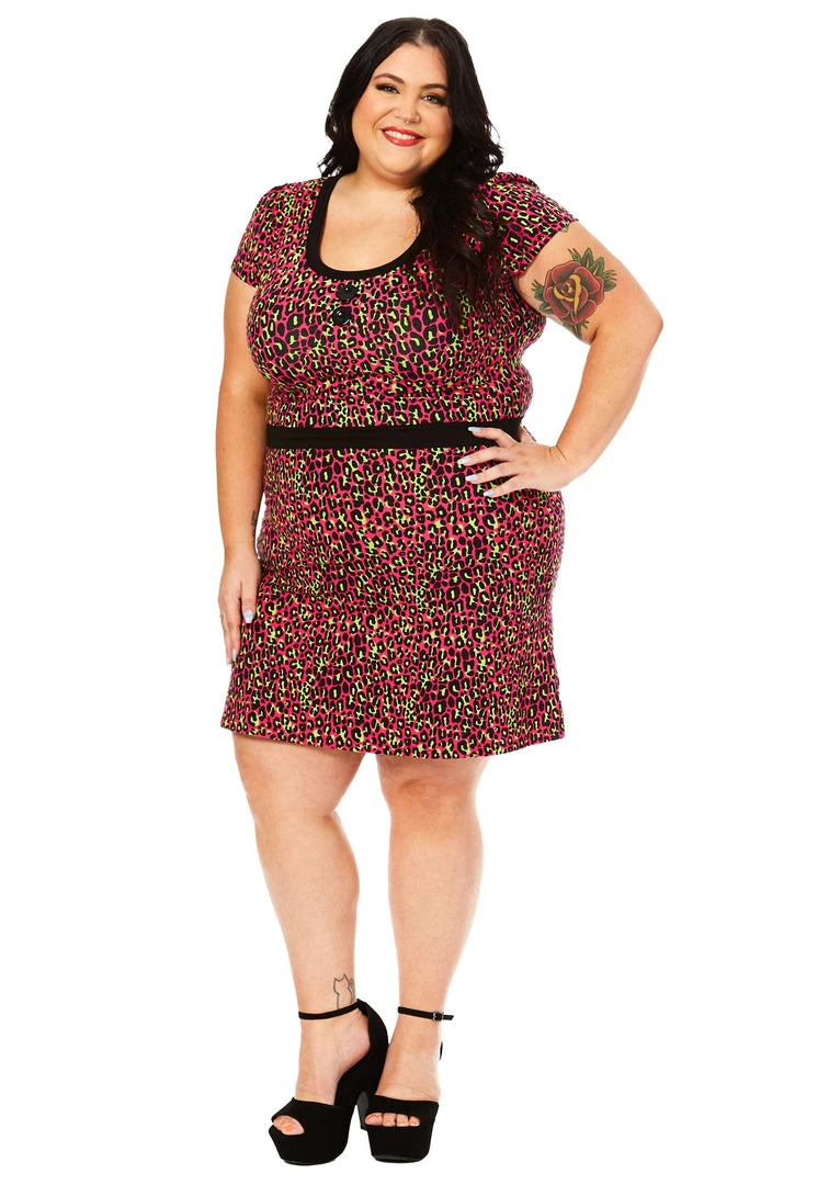 Our popular Beki dress has made a very LOUD comeback! The Hot Pink Leopard Beki dress is made out of a soft and stretchy cotton spandex knit, complete with a contrast neck and waist rib and oversized, absolutely perfect buttons! We just can’t get enough of this simple and cute silhouette, how about you?