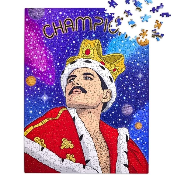 Pass the time with this fabulously illustrated Champion Freddie Puzzle! This bright and bold puzzle is made of 500 thick non-uniform pieces and comes with an 8″ x 10″ reproduction piece. Measures 18″ x 24″ when complete.