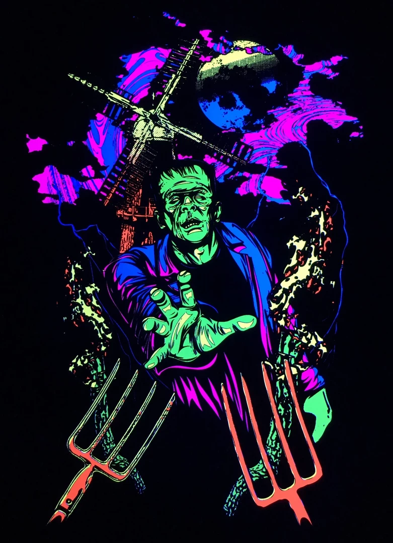 Fight back Frankenstein’s Monster with this killer flocked blacklight poster!Ā