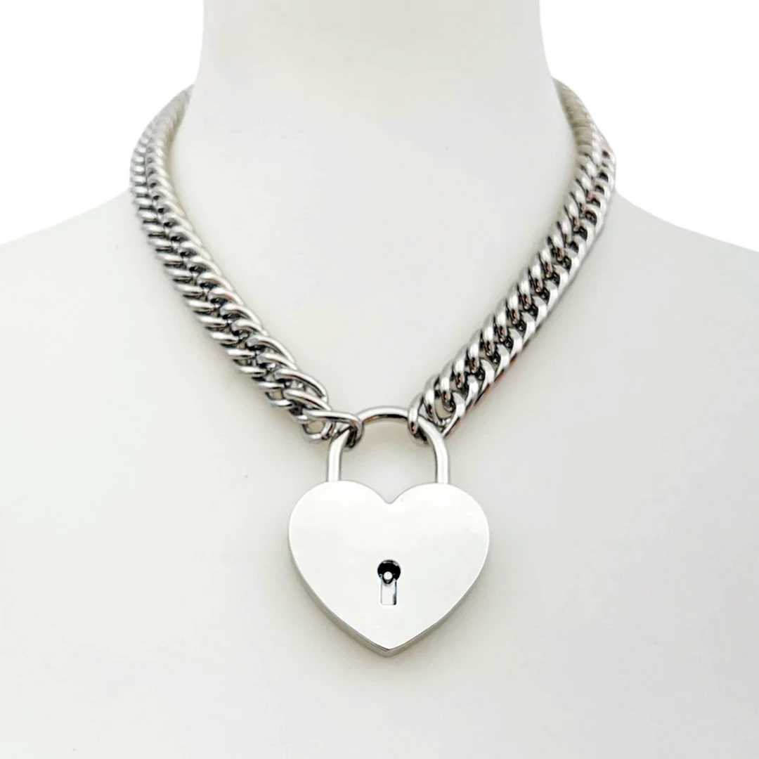 Give them the key to your heart with this XL size chain necklace featuring a real, working, jumbo silver heart shaped lock complete with a matching heart shaped key. Necklace closes with the key.