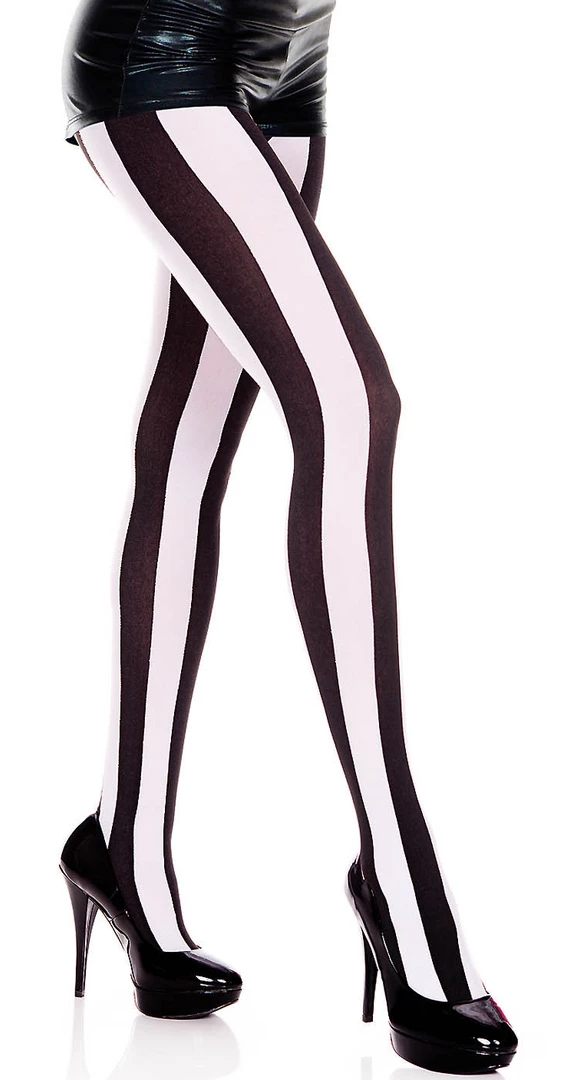 Take it to the big top with these Showtime Vertical Stripe Tights! Not your average striped tights, these feature bold black and white stripes in a vertical pattern.