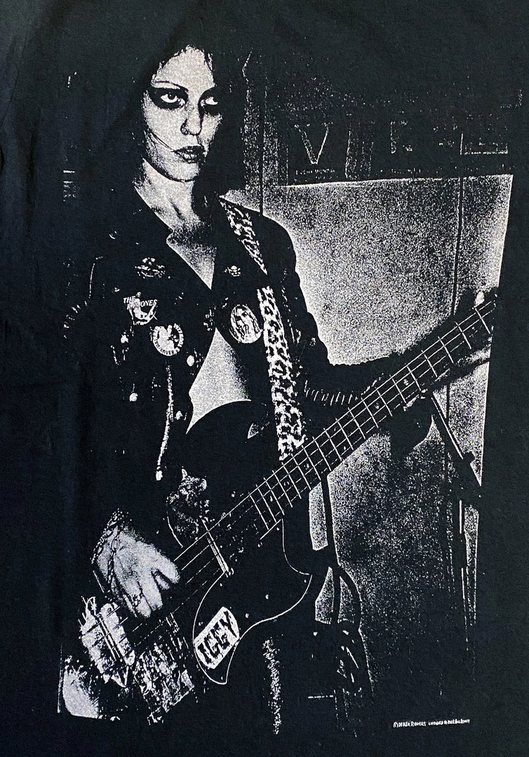 An absolute style and punk icon, this Rock Roll Repeat tee features Derek Ridgers’ live photo of Gaye Advert, bass player for the Adverts, who is often described as the ‘first female punk star’. It’s printed on a soft, black, sweatshop-free fitted tee.