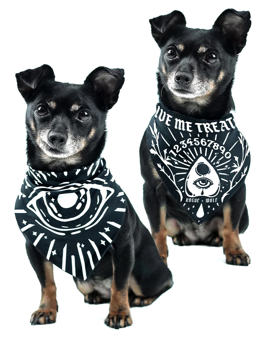 What do we want? Treats! When do we want them? All the time! This cute reversible pet bandana from Rogue + Wolf says exactly what our familiars are thinking: we want treats and we want them now! And who could resist them in such a cute piece of neckwear? With a Ouija design on one side, and the All Seeing Eye on the other, this witchy pet bandana is fast-drying and comes with an adjustable snap fastening so you can pop it on and off with ease!