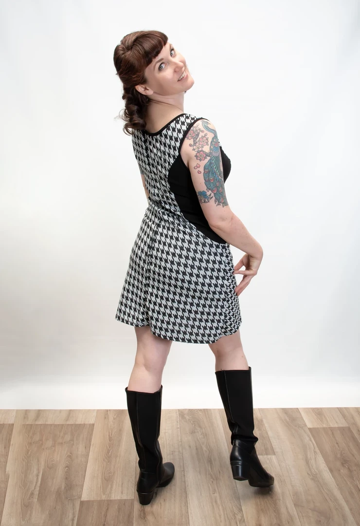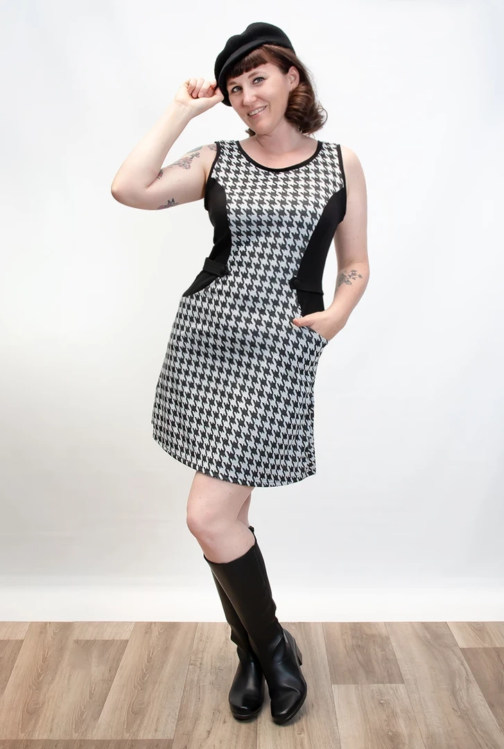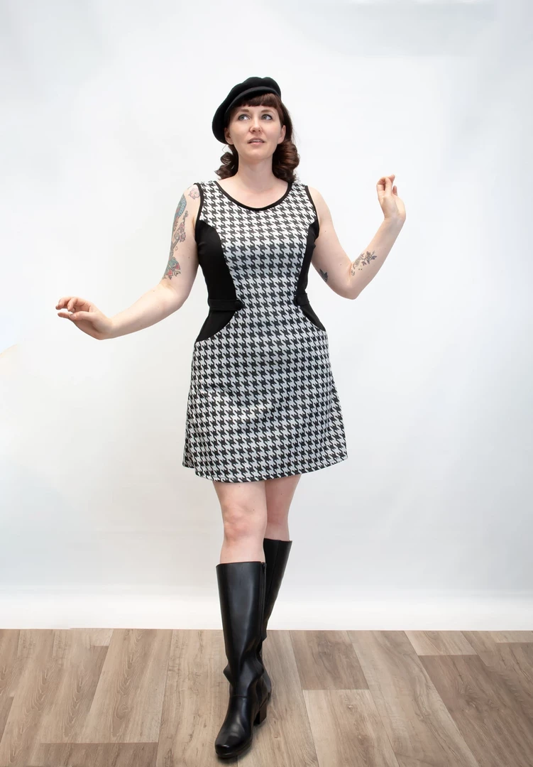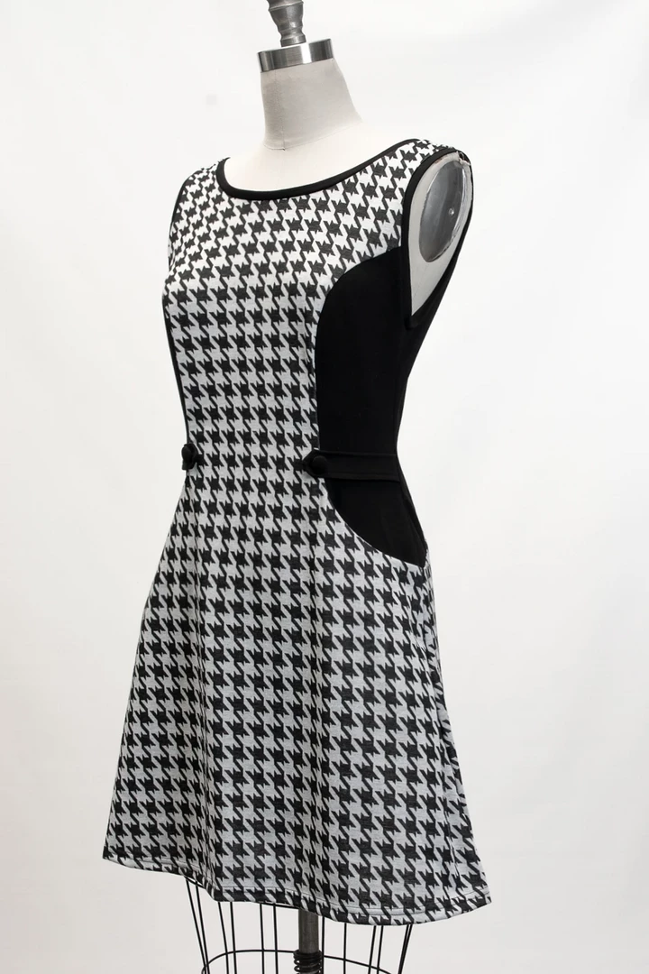 Make it mod in this fabulous mini shift dress from Heart of Haute! The Mandie Houndstooth Dress has a slight a-line fit complete with tiny tab & button details on both sides of the waistline, pockets, and a center back zip. Crafted from a soft, sweater weight material with slight stretch, it works well as a cute jumper too with an additional top layered underneath!