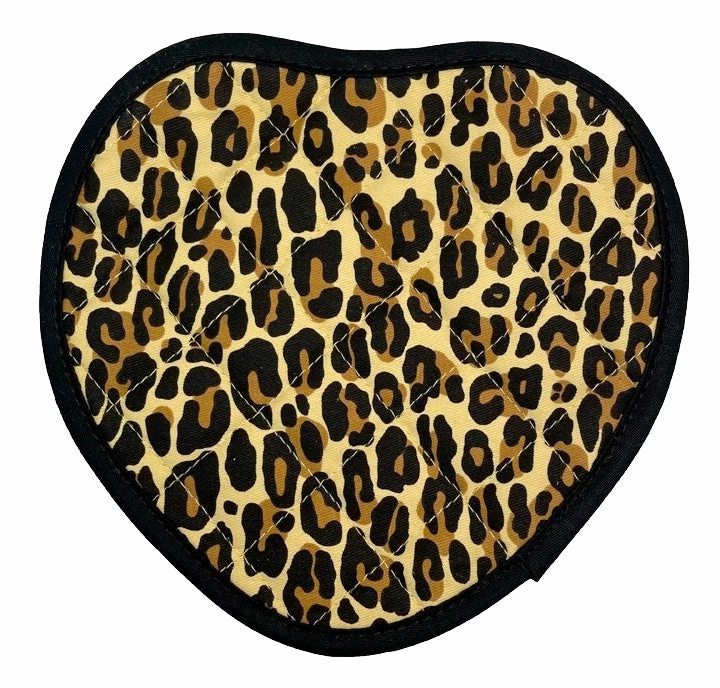 It doesn’t get more purrfect than our heart shaped Leopard Pot Holder to add a little kitsch to your kitchen! This pot holder is quilted and padded for handling all of your hot items, rowr!