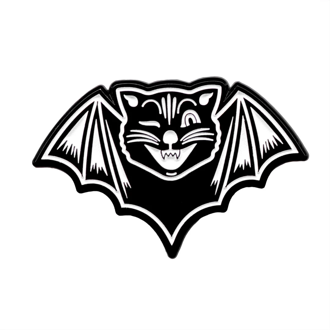 Your favorite Sourpuss logo now has wings! We love the Jinx The Bat logo so much we made an enamel pin. Oh, and guess what! It glows in the dark…. Two posts on the backside to keep it in place.