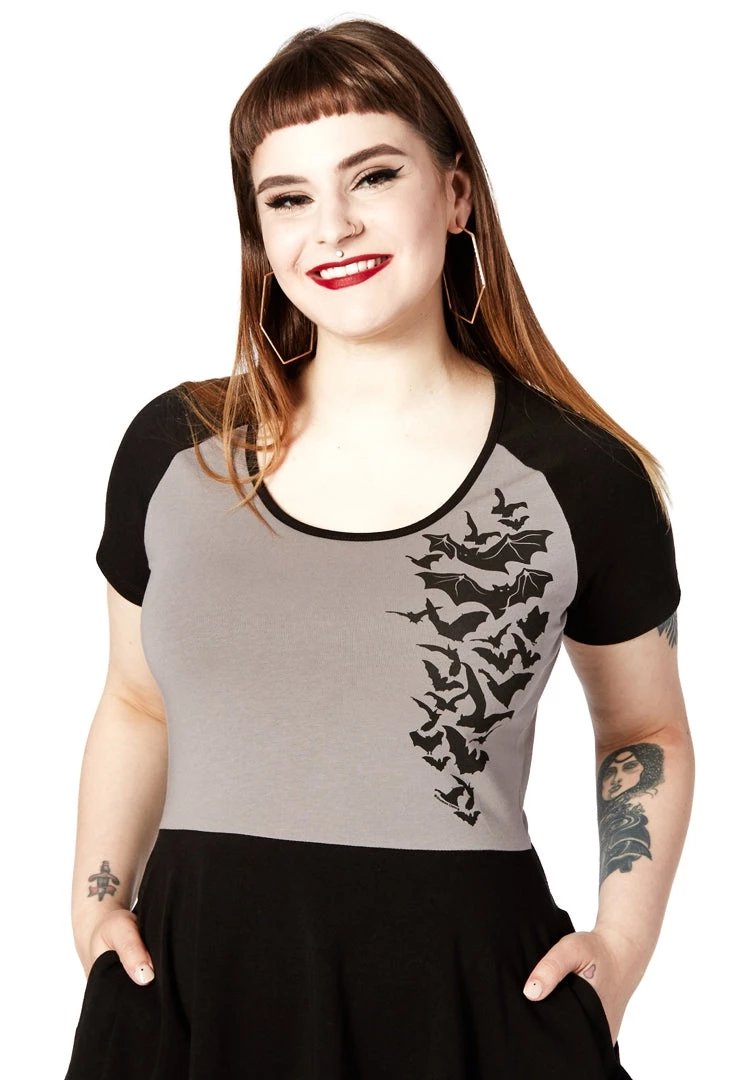 Bats are a neutral print around these parts, and can you blame us? The new Nokturnal Bats Raglan skater dress is THE perfect all-year, all-occasion dress. It is made out of a super stretchy cotton spandex knit, has figure flattering silhouette and neckline, and it HAS POCKETS!