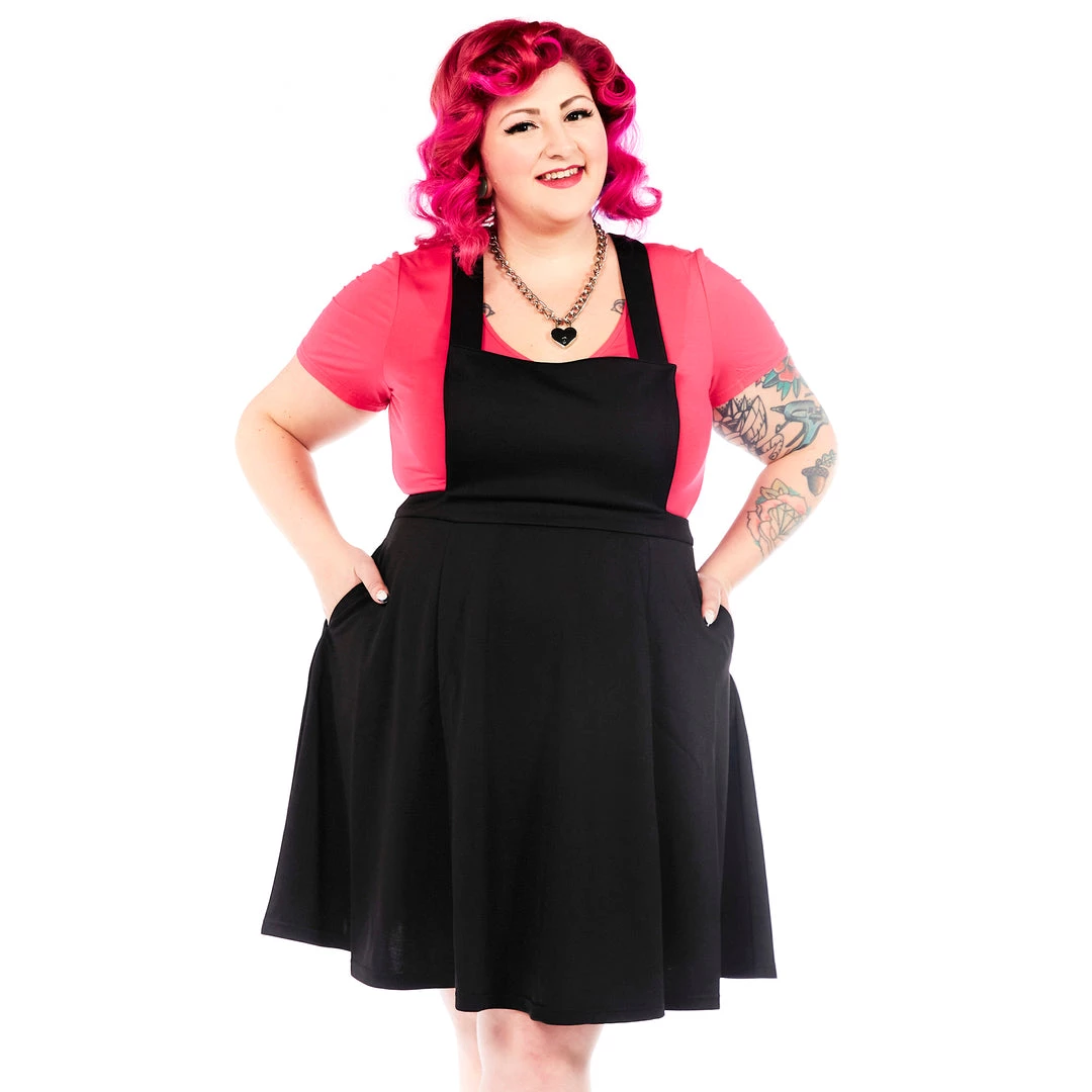 The new Pinafore Dress is an absolute must-have wardrobe staple! This pinafore literally looks great with anything underneath, and it’s perfect for all season. The fabric is a stretchy ponte knit, it has two button holes at the front for adjustability, and it has pockets! What’s not to love?