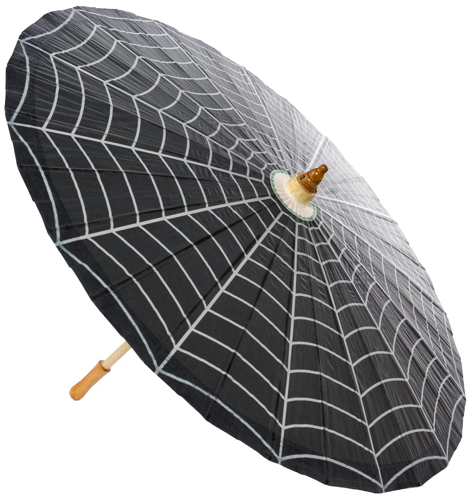 Stay out of the sun in style and make sure you keep that pale skin the proper deathly pallor with our spiderweb parasol! Made of non-oiled paper with a wooden handle.