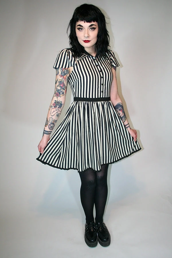 SOURPUSS STRIPE LYDIA DRESS CREAM & BLACK