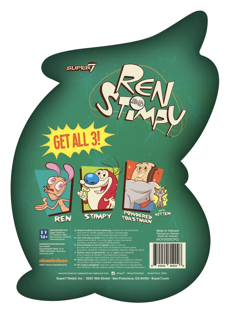 As good-natured and jolly as he is dim-witted, Stimpy is the perfect counterpart to his somewhat more [ahem]…“abrasive” cohort, Ren. This 3.75” articulated Ren & Stimpy ReAction figure of Stimpson “Stimpy” J. Cat, is just as doofy and lovable as you remember him to be. Stock up on some Gritty Kitty Litter and cue up reruns of The Muddy Mudskipper Show so this figure of Stimpy will feel at home as part of your ReAction figure family. Oh JOY!
