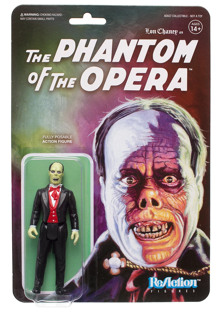 Add a scream worthy attraction to your home with this Phantom of the Opera Reaction Figure made by Super7. Part of their Wave 2 series of Universal Monsters, these 3.75″ ReAction figures have new card art by Ed Repka. This fully poseable figure features 5 points of articulation and can be posed to frighten any curious onlooker! Collect the entire set for a Universal entourage sure to spook up any room!