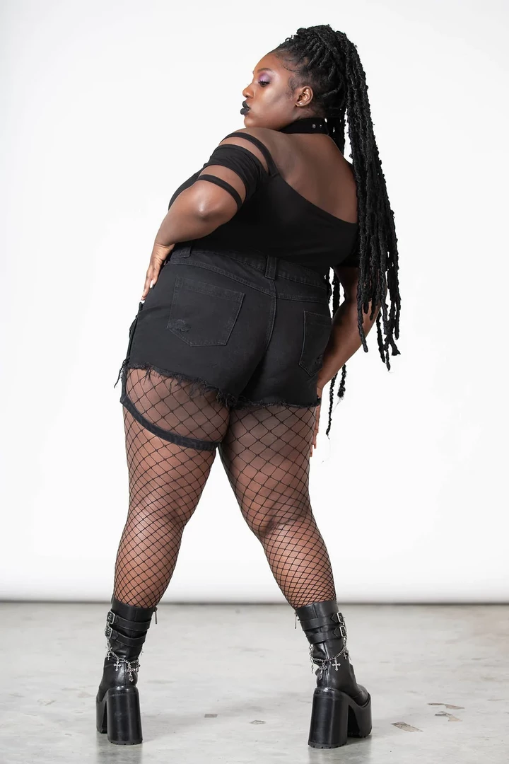 Ride into the dystopian sunset with the Fury Road Denim Garter Shorts from Killstar. Made of a sturdy distressed denim, they feature a