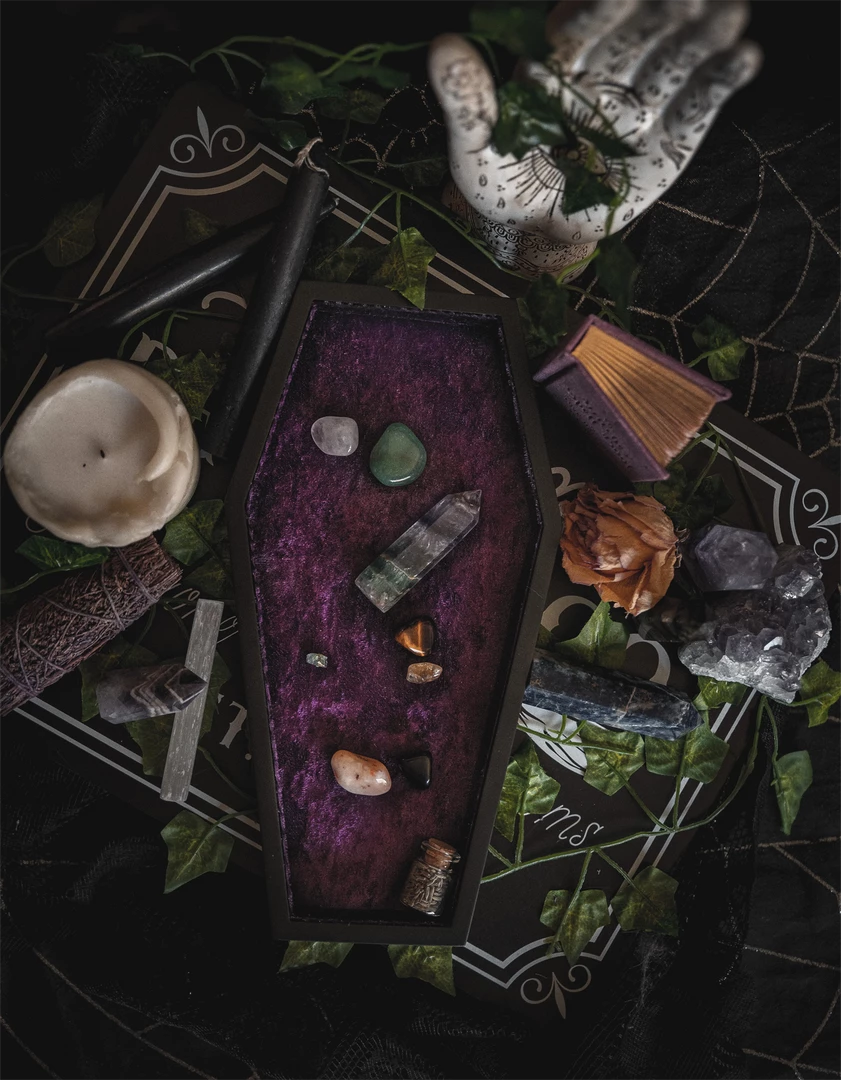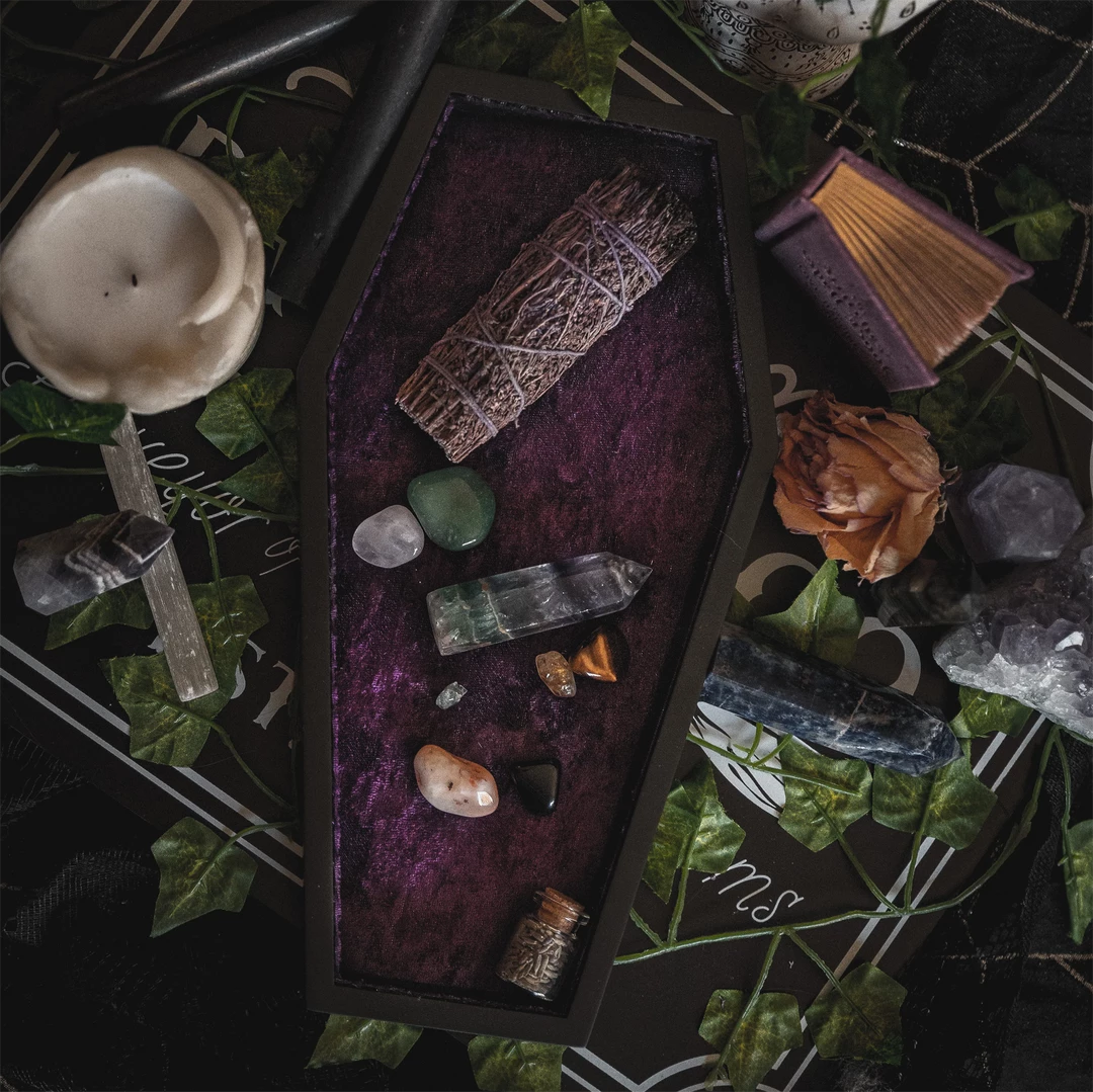 What’s New LIVELY GHOSTS VELVET COFFIN TRINKET TRAY PURPLE