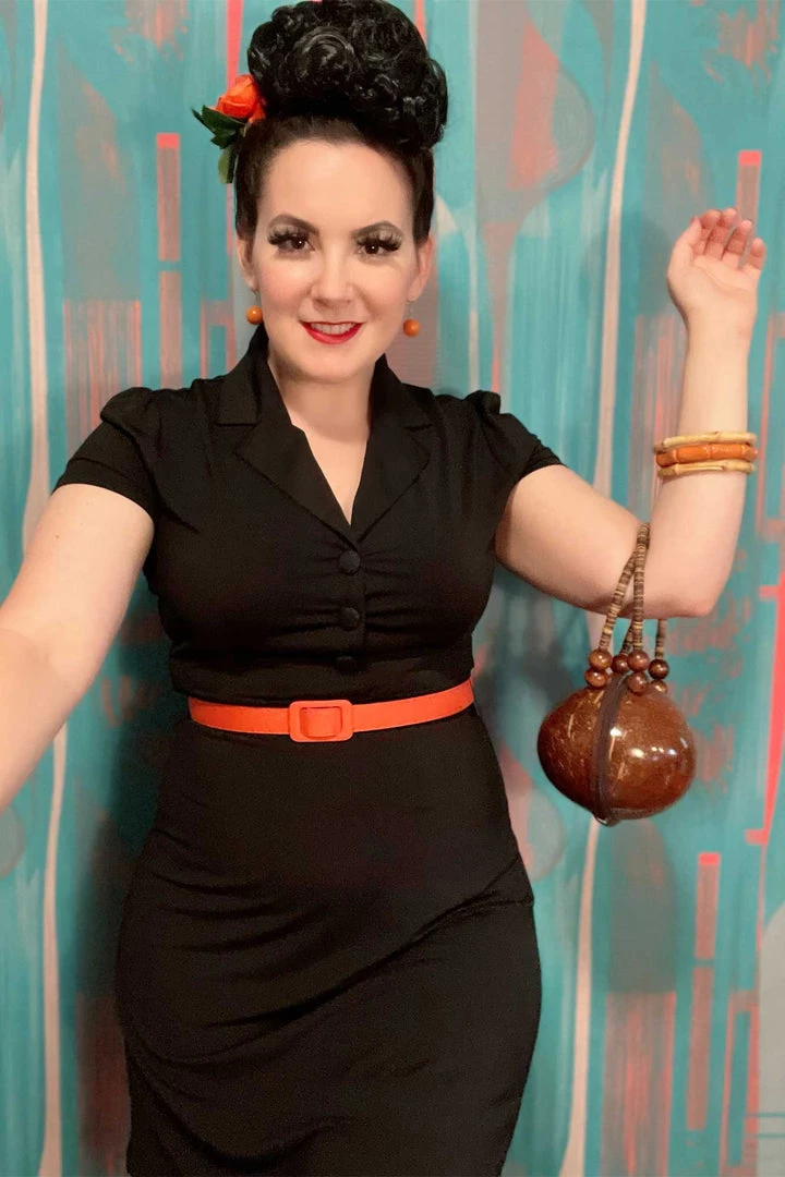 We can’t believe that this is our first ever solid Black Rosie dress, but it’s definitely worth the wait! The Rosie is one of our most popular styles – it’s made out of a super stretchy and lightweight poly spandex knit, with a 1940’s inspired silhouette, 3-button front closure, and a Sourpuss flag label sewn on the sleeve. It’s going to be a must-have for your wardrobe!